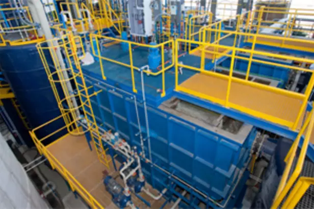 The high-rate clarification system is based on the ballasted flocculation concept developed by Veolia. It uses microsand and polymer in the flocculation tank to increase the weight of the flocs and hence the water clarification velocity, reaching 40 to 100 times higher velocity than conventional clarification solutions.
