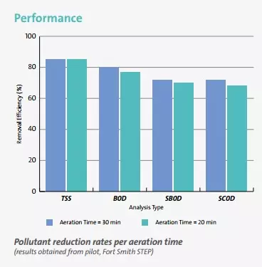 - Treated effluents comply with EPA (USA) discharge standards for suspended solids and BOD
