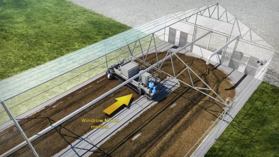 SOLIA™ Mix工艺采用太阳能干化和生物干化相结合的方式,将污泥干化并储存在温室中,并通过不断通风引入外部干燥空气。