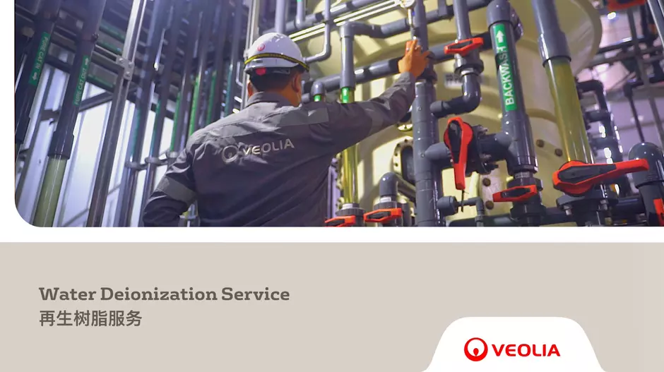 威立雅水务技术可为客户提供优质的去离子水,并负责处理所有的再生树脂装置的配送更换、再生及回收。